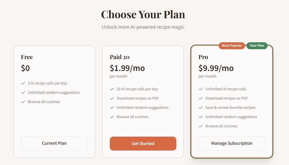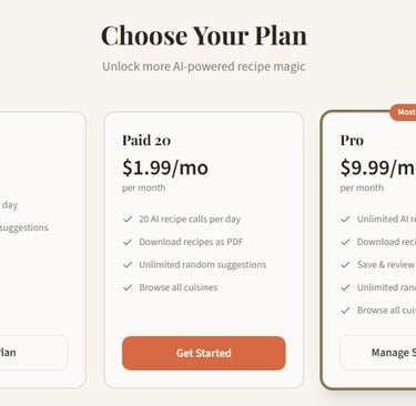 Select from your favourite cuisine, and a recipe will appear like magic!